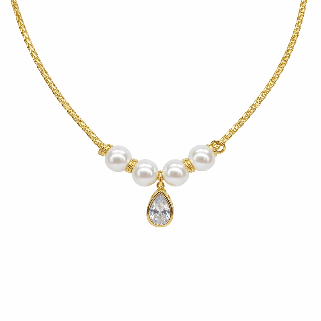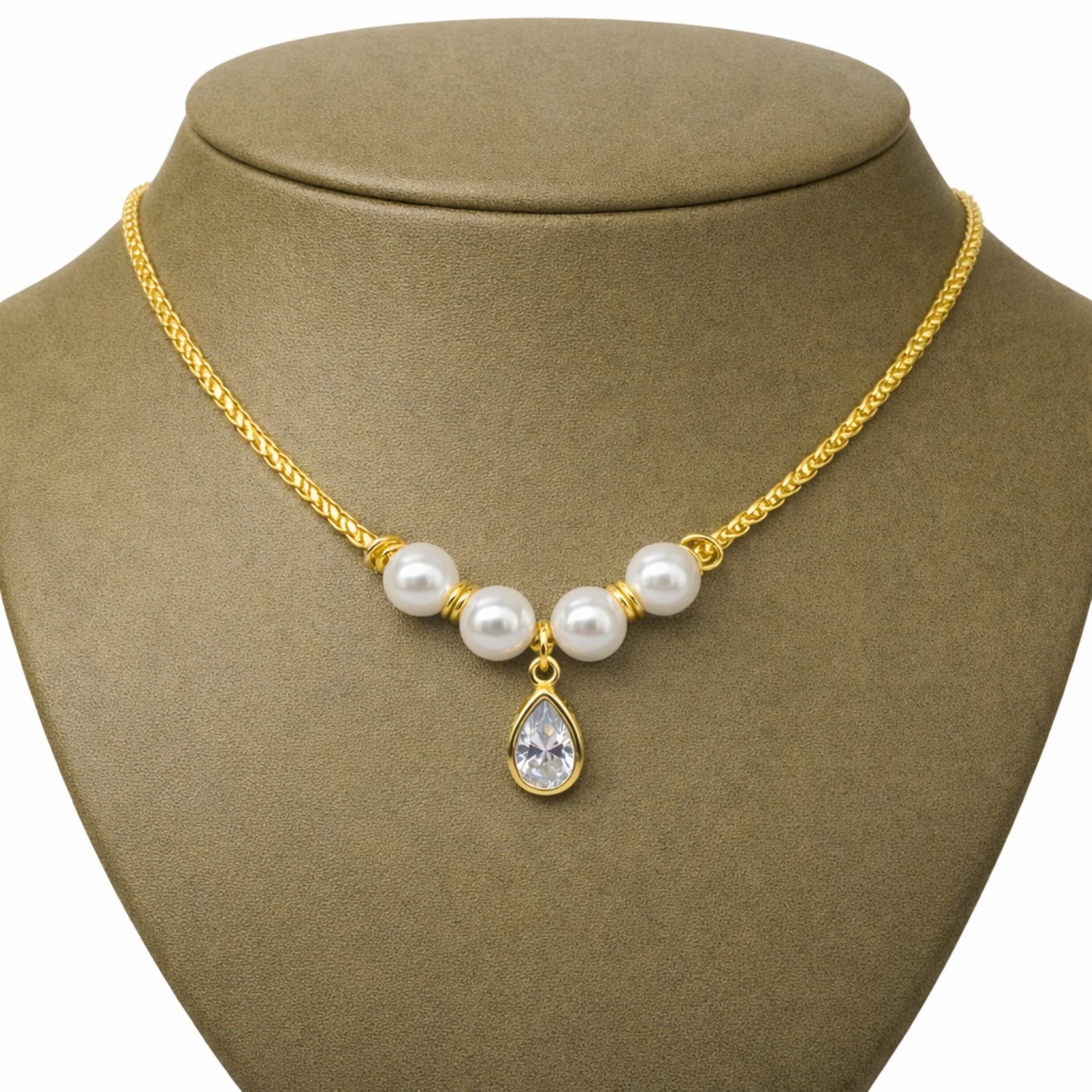 Delikatny i niezwykle kobiecy naszyjnik, który zachwyca swoją prostotą i eleganckim wykończeniem. Złoty łańcuszek został ozdobiony perełkami, które nadają całości ponadczasowego charakteru i subtelnej lekkości.